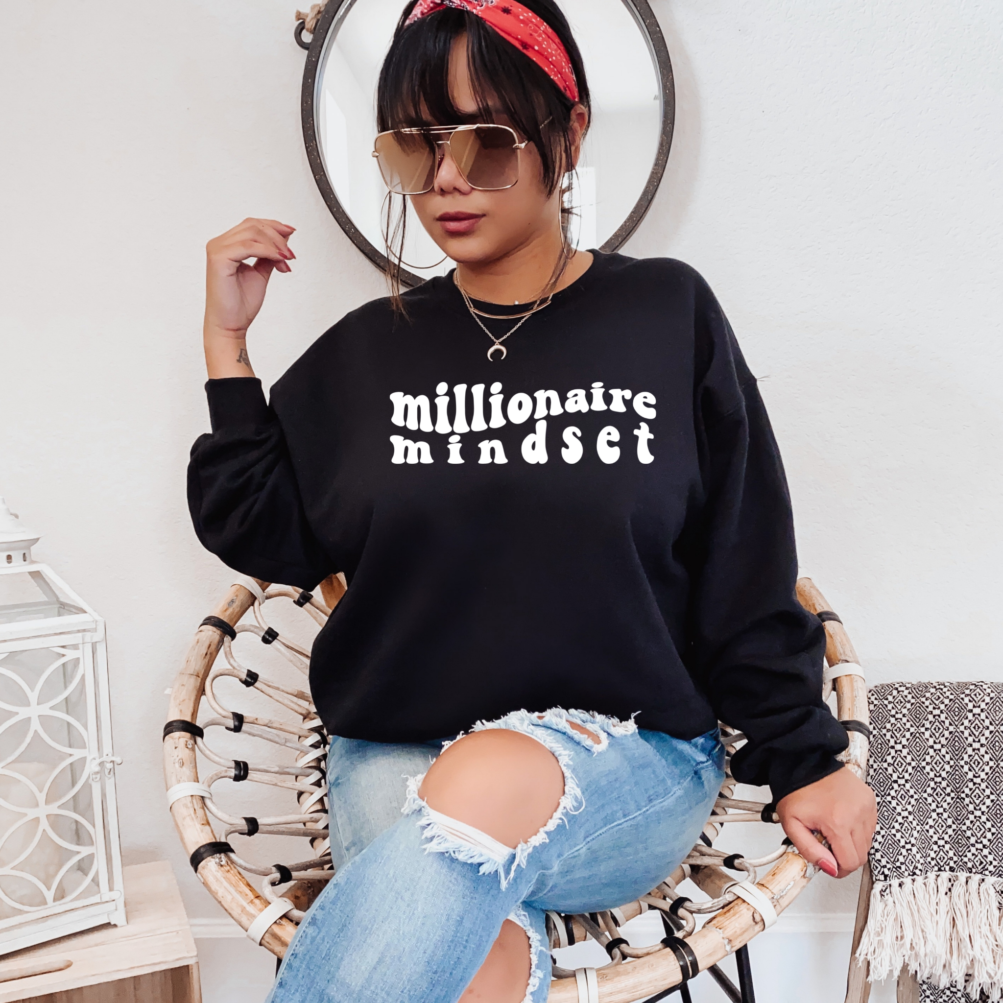The Millionaire Mindset Sweatshirt is perfect for the women who’s goals are beyond traditional. Wear this sweatshirt (with puffed text) to remind your inner millionaire that it's time to manifest your success!